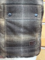 ウール混のハイネックダウンベストです。茶系のチェックが可愛らしい雰囲気ですね。